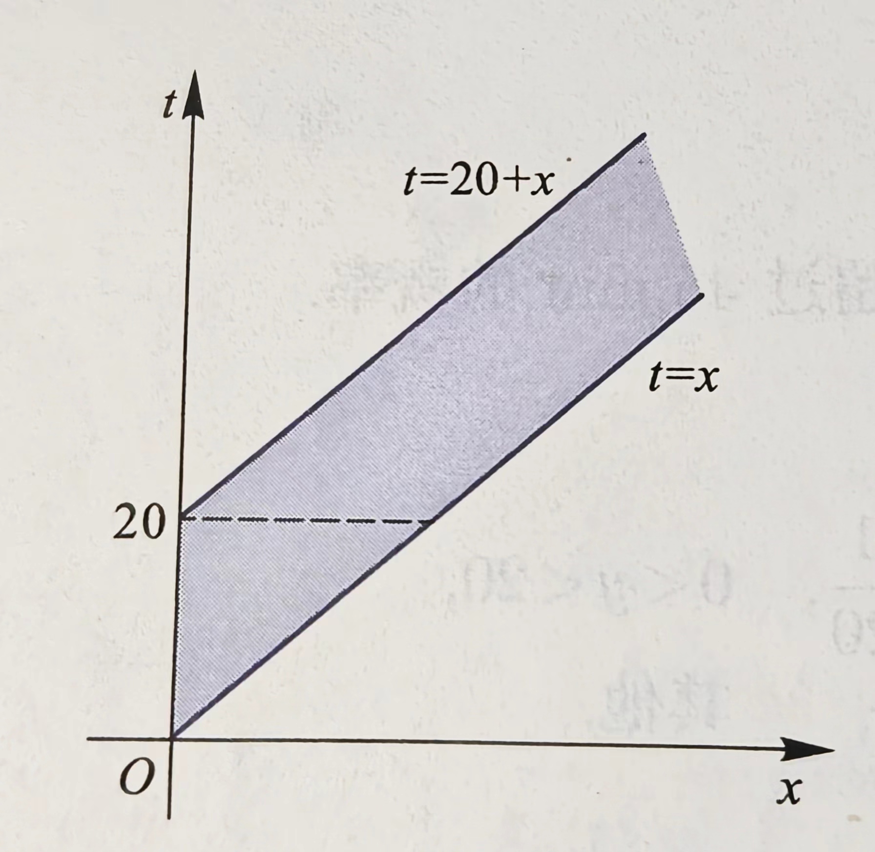 f(x,t−x)=⎩⎨⎧201λe−λx,x>0,0<t−x<200,其他